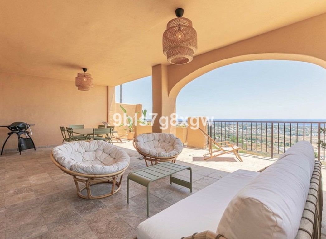 Outside, a spacious 44m² South-facing terrace, partially covered (to be enjoyed in all seasons), offers panoramic views of the Mediterranean Sea, Marbella, the golf courses and, on clear days, even the African coastline. Inside, these stunning views are visible from the moment you enter, in every living space and even in the master suite.