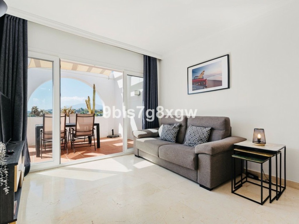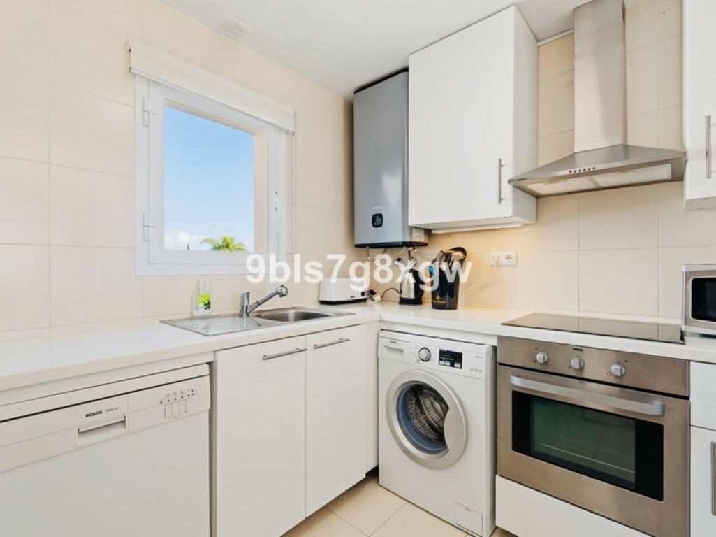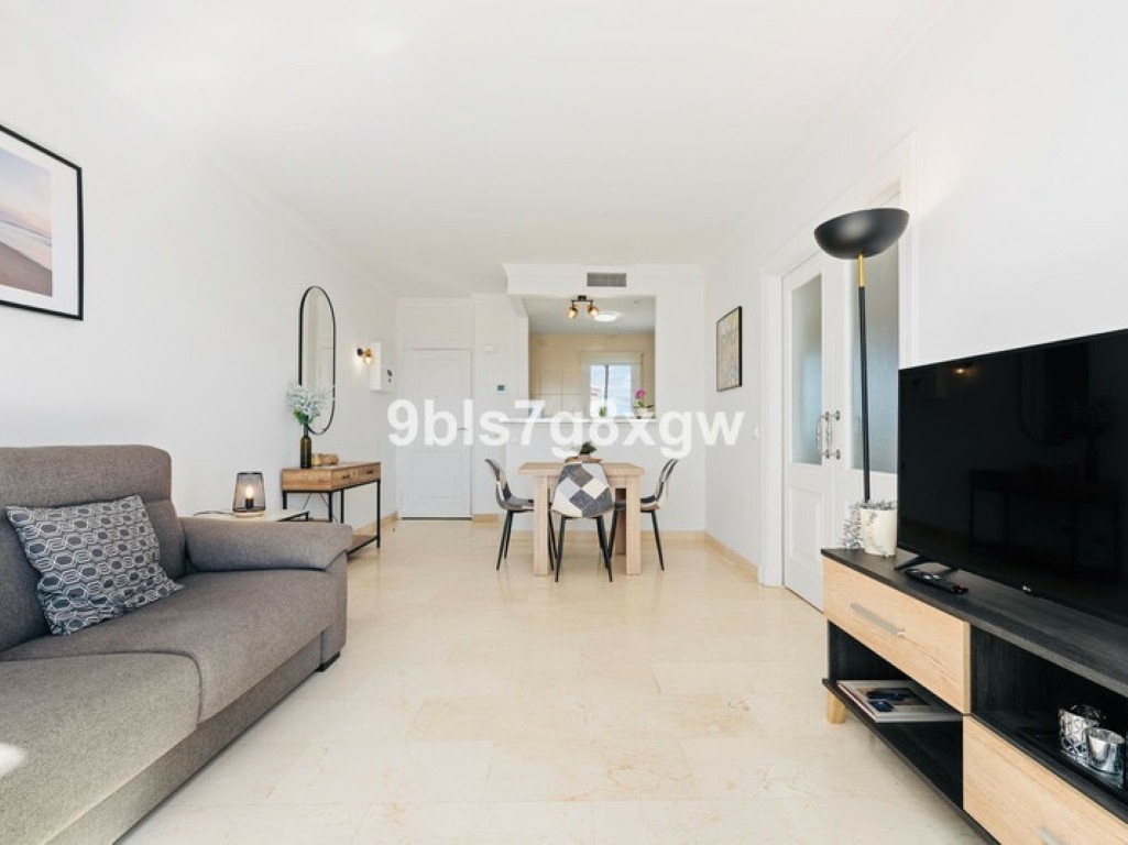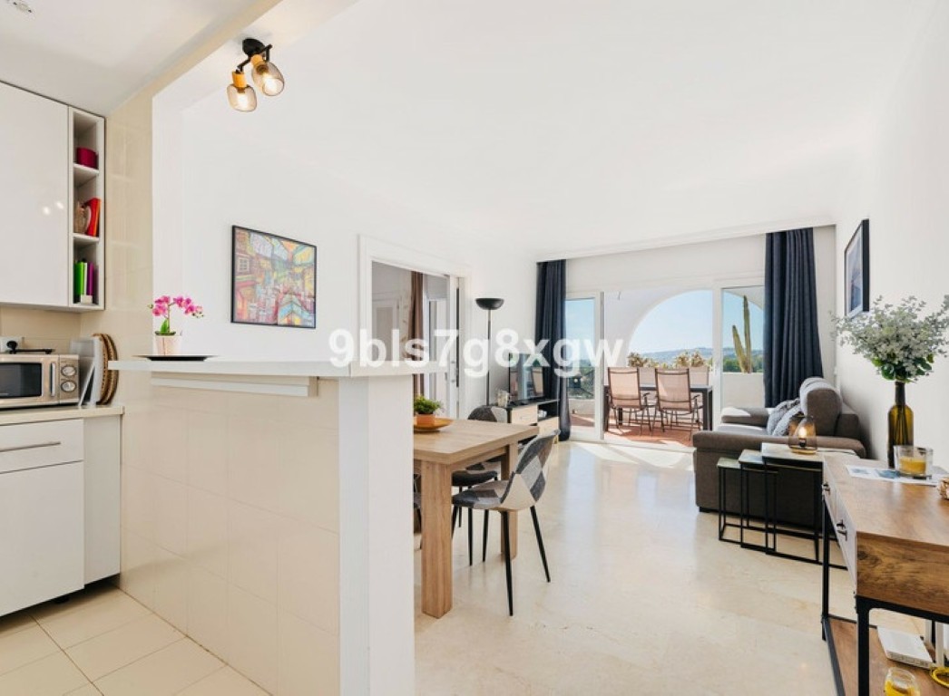 This beautifully maintained apartment combines comfort and tranquility. The bright open-plan living area includes a fully equipped kitchen, while the large bedroom offers two generous builtin wardrobes. The modern bathroom en-suite features an Italian-style walk-in shower. A spacious South West-facing terrace provides breathtaking views of the sea, surrounding mountains, and Gibraltar on clear days—perfect for enjoying sunsets and evening breezes.