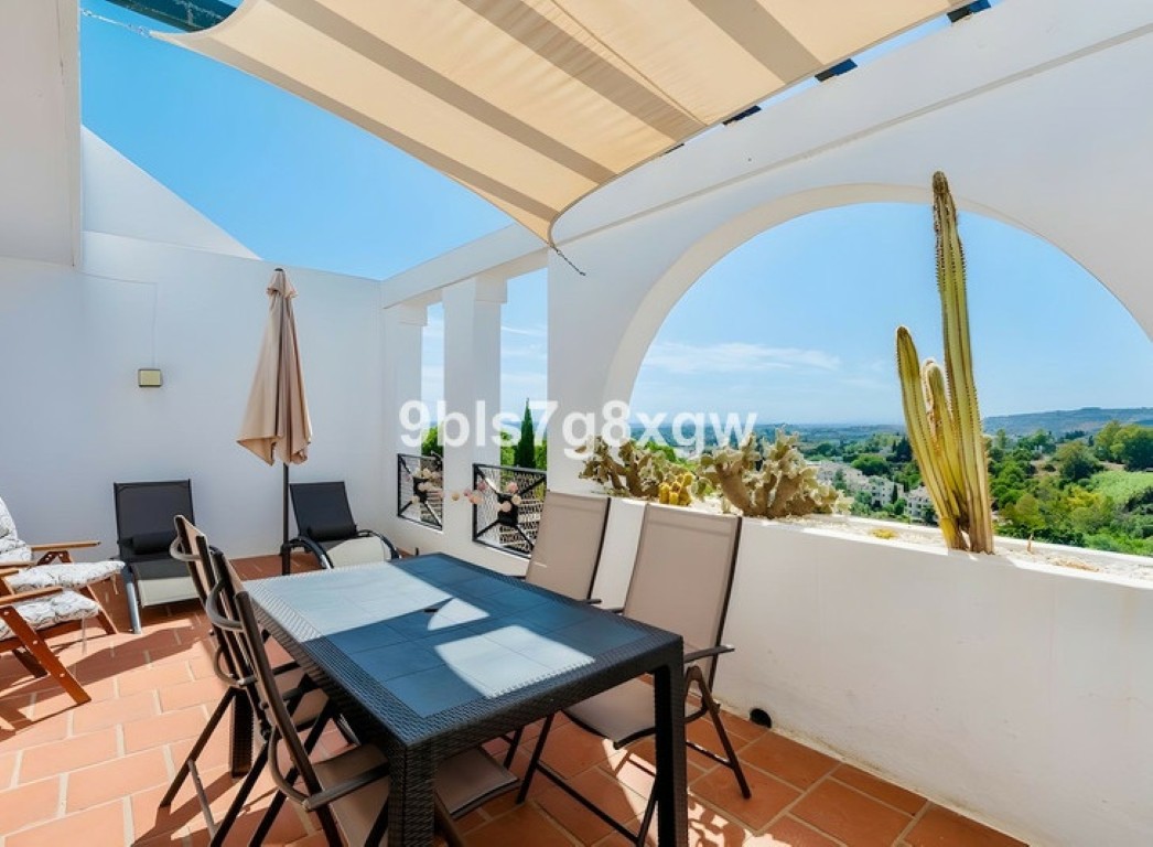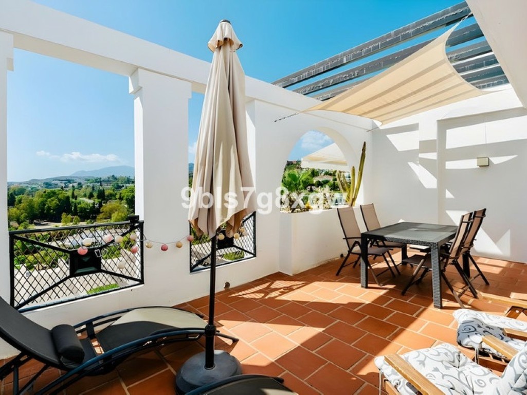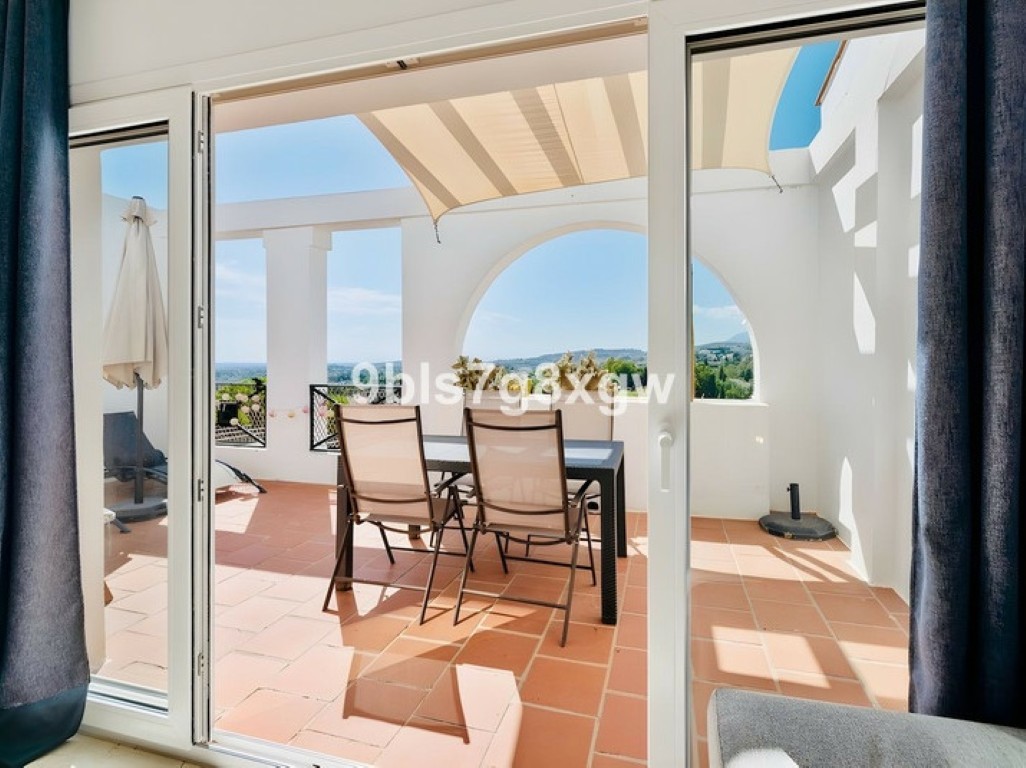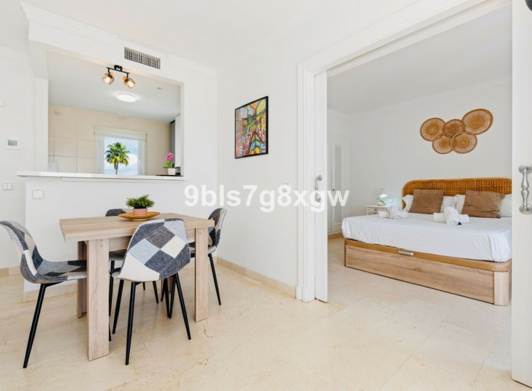 This beautifully maintained apartment combines comfort and tranquility. The bright open-plan living area includes a fully equipped kitchen, while the large bedroom offers two generous builtin wardrobes. The modern bathroom en-suite features an Italian-style walk-in shower. A spacious South West-facing terrace provides breathtaking views of the sea, surrounding mountains, and Gibraltar on clear days—perfect for enjoying sunsets and evening breezes.